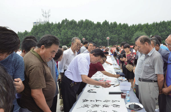 我县举行纪念抗战胜利70周年 书画展暨长卷笔会