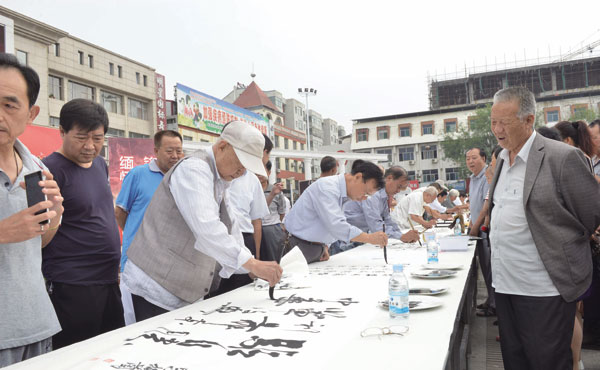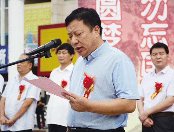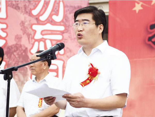 县委常委、宣传部长闫晓刚在纪念抗战胜利70周年书画展暨长卷笔会开幕式上讲话。