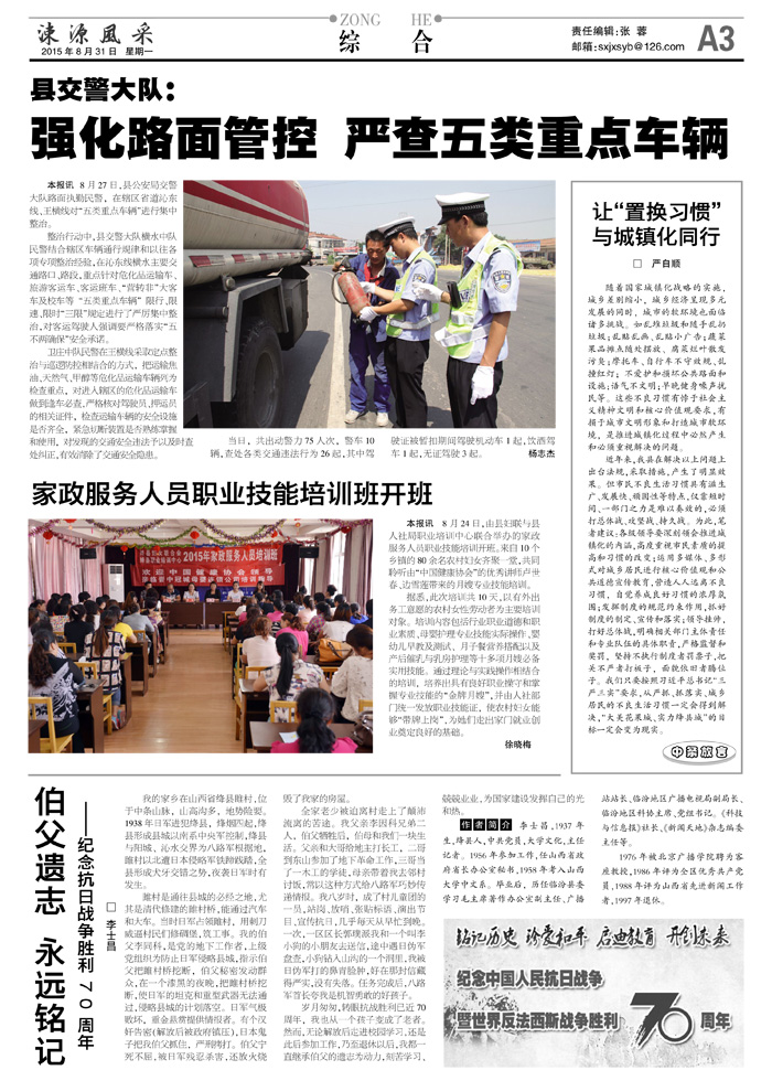 伯父遗志 永远铭记——纪念抗日战争胜利70周年