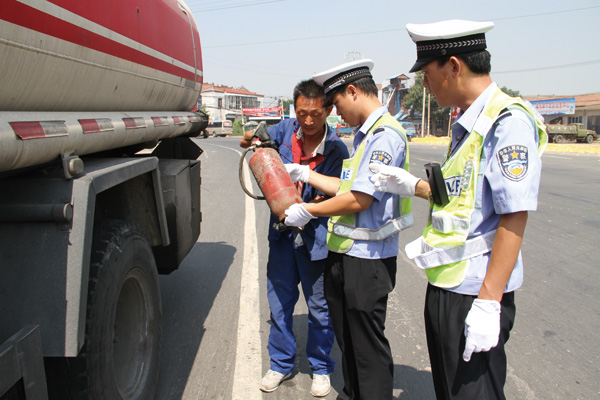 卫庄中队民警在王横线采取定点整治与巡逻防控相结合的方式,把运输焦油、天然气、甲醇等危化品运输车辆列为检查重点,对进入辖区的危化品运输车做到逢车必查,严格核对驾驶员、押运员的相关证件,检查运输车辆的安全设施是否齐全,紧急切断装置是否熟练掌握和使用,对发现的交通安全违法予以及时查处纠正,有效消除了交通安全隐患。