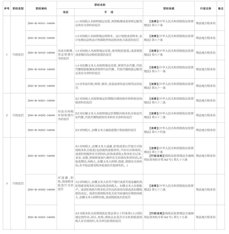 绛县地税局涉税行政权力清单