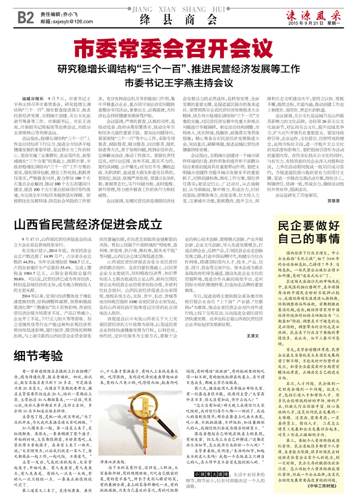 《涑源风采》绛县社区报 贴近,决定影响力 涑源传媒编辑出版 微信:suyuanfengcai 邮箱:sxjxsyb@126.com 电话:6523423