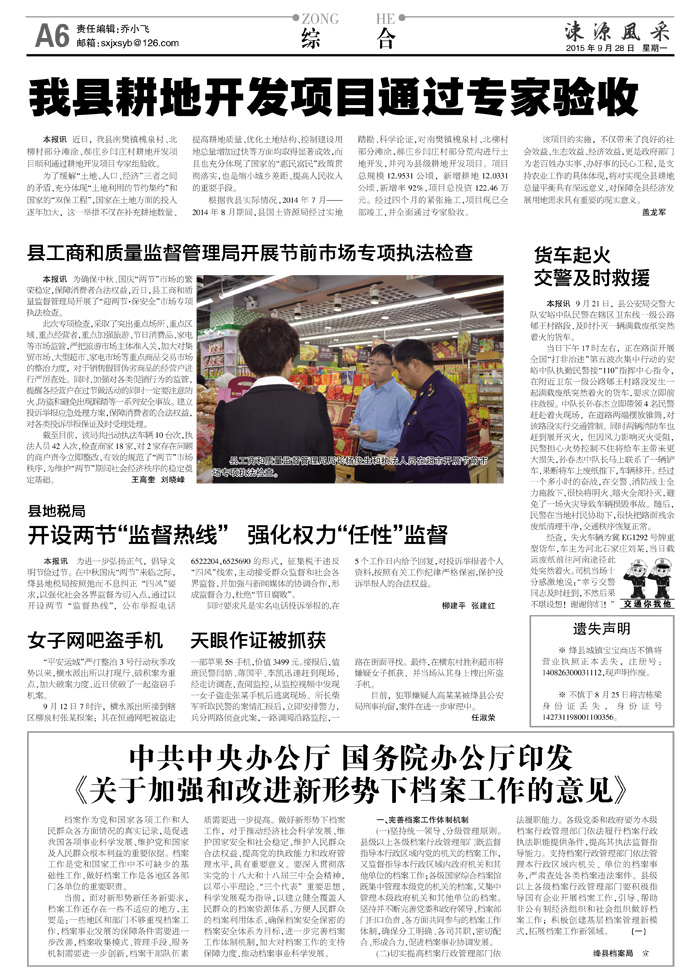 根据我县实际情况,2014年7月——2014年8月期间,县国土资源局经过实地踏勘、科学论证,对南樊镇槐泉村、北柳村部分滩涂,郝庄乡闫庄村部分荒沟进行土地开发,并列为县级耕地开发项目。项目总规模12.9531公顷,新增耕地12.0331公顷,新增率92%,项目总投资122.46万元。经过四个月的紧张施工,项目现已全部竣工,并全面通过专家验收。