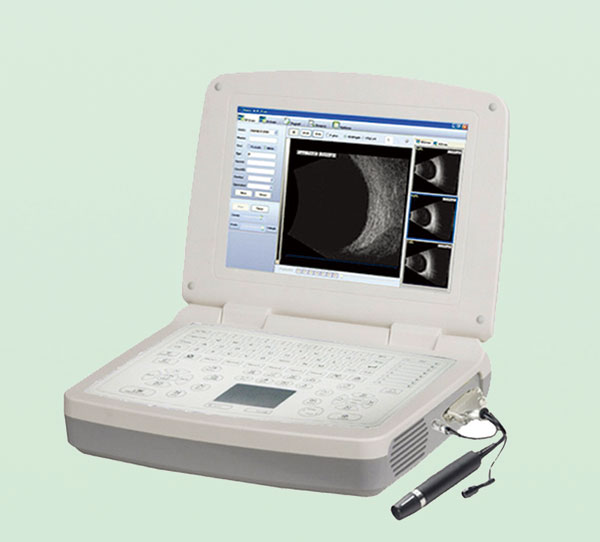 眼用A超是将探头置于眼前,用液晶数字显示前房深度、晶状体厚度、玻璃体腔长度和眼轴长度,用于眼活体结构测量。