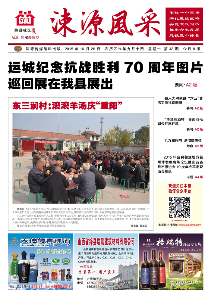 《涑源风采》绛县社区报 贴近,决定影响力 涑源传媒编辑出版 微信:suyuanfengcai 邮箱:sxjxsyb@126.com 电话:6523423