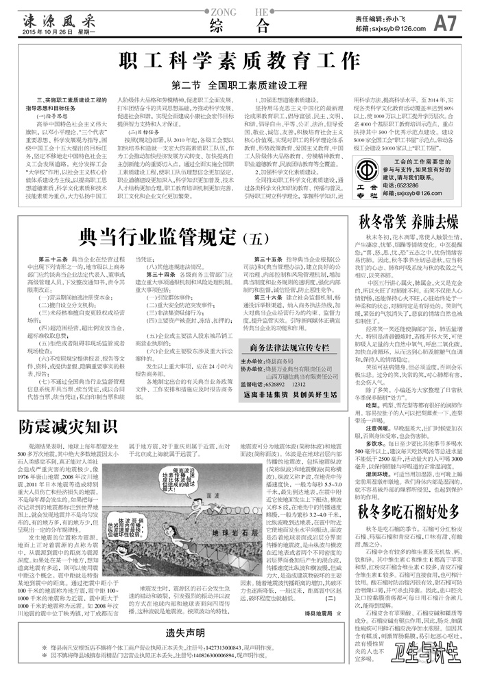 《涑源风采》绛县社区报 贴近,决定影响力 涑源传媒编辑出版 微信:suyuanfengcai 邮箱:sxjxsyb@126.com 电话:6523423