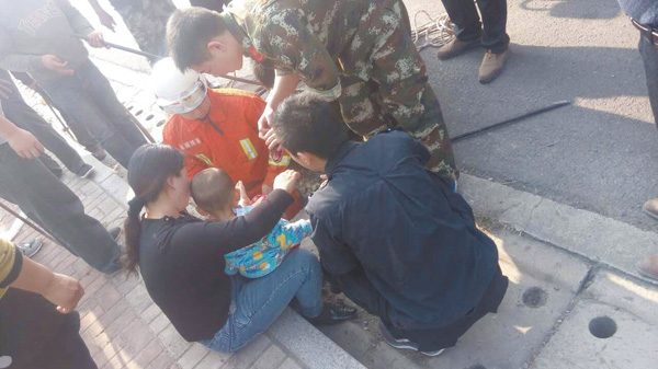 路遇幼儿腿卡排水孔 民警积极施救受称赞