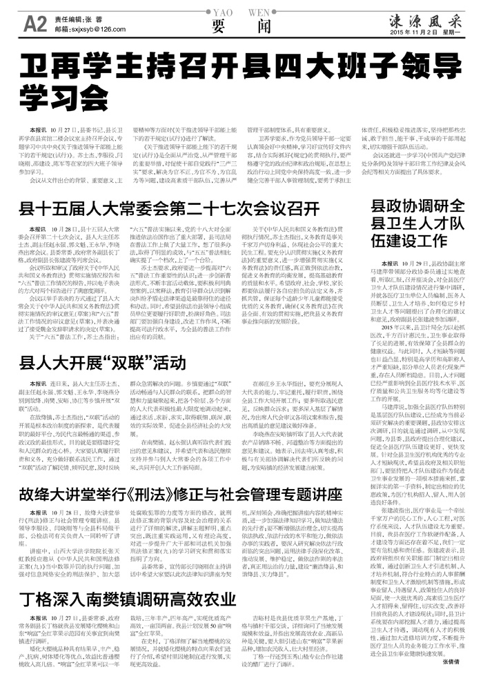 《涑源风采》绛县社区报 贴近,决定影响力 涑源传媒编辑出版 微信:suyuanfengcai 邮箱:sxjxsyb@126.com 电话:6523423