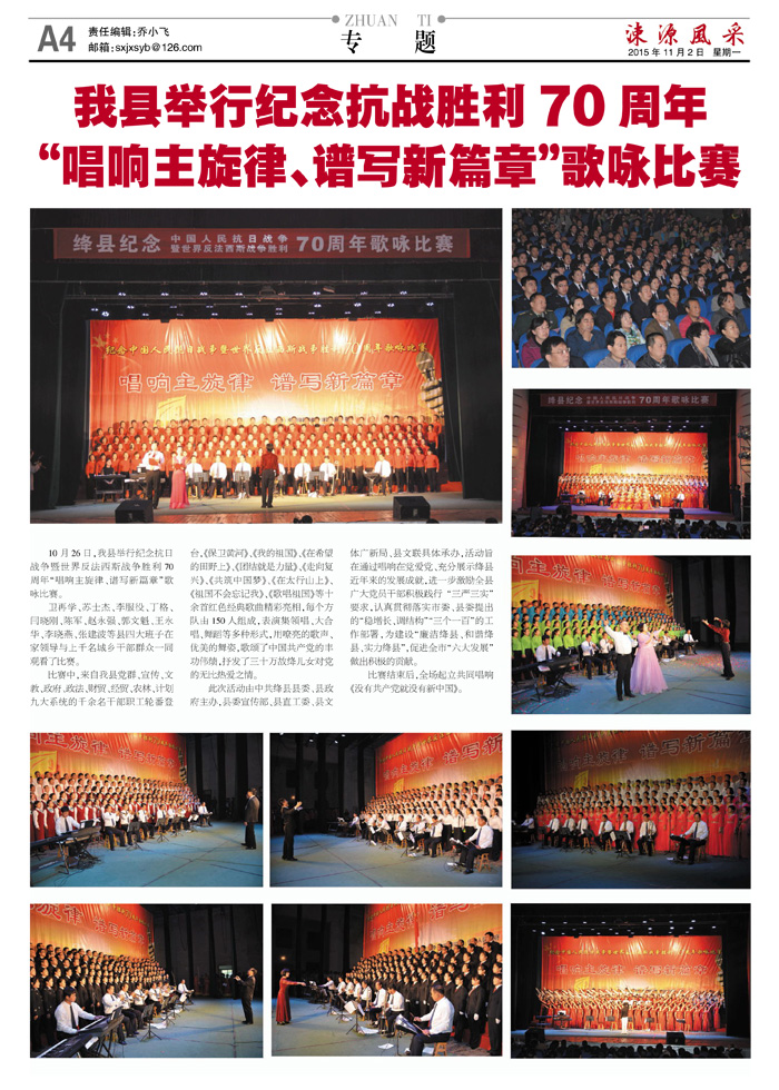 我县举行纪念抗战胜利70周年"唱响主旋律、谱写新篇章"歌咏比赛