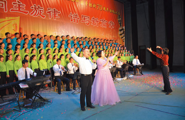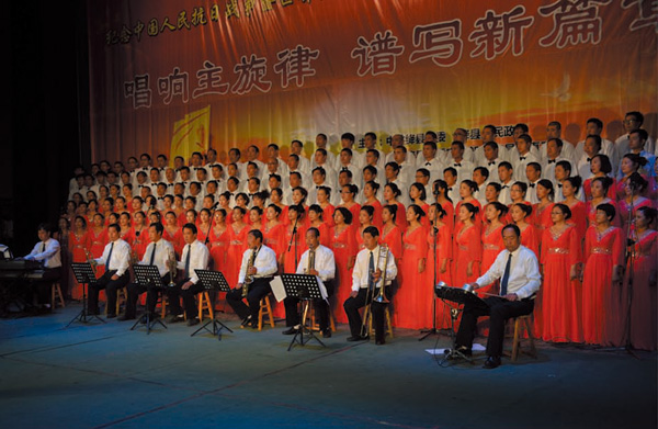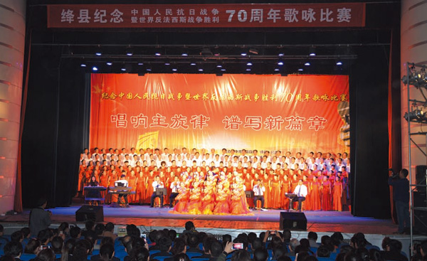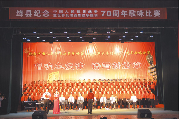 10月26日,我县举行纪念抗日战争暨世界反法西斯战争胜利70周年"唱响主旋律、谱写新篇章"歌咏比赛。