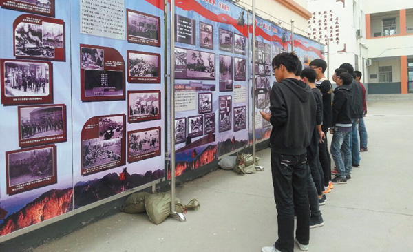 为进一步推进爱国主义教育,缅怀抗日先烈,引导广大师生牢记历史、珍爱和平、开创未来,珍惜来之不易的幸福生活,9月28日,县人武部在实验中学举办了"铭记历史,警示未来"为主题的纪念抗战胜利暨反法西斯战争胜利70周年图片展。