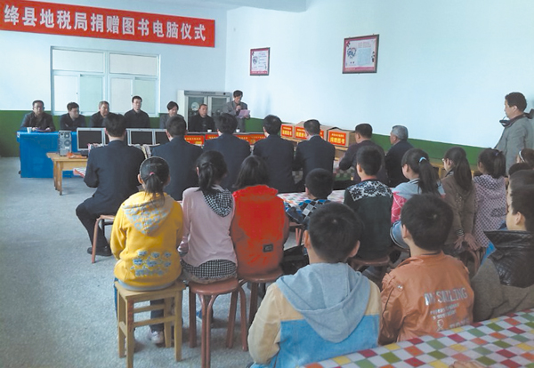 县地税局为故绛镇下高池村小学捐赠图书、电脑、书柜