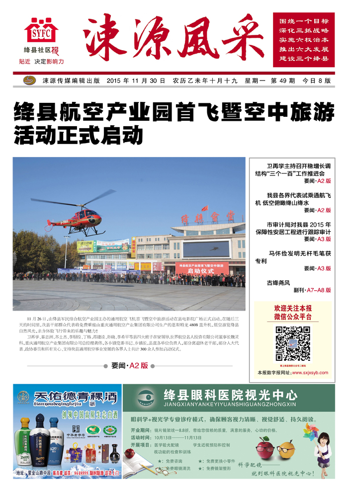 《涑源风采》绛县社区报 贴近,决定影响力 涑源传媒编辑出版 微信:suyuanfengcai 邮箱:sxjxsyb@126.com 电话:6523423