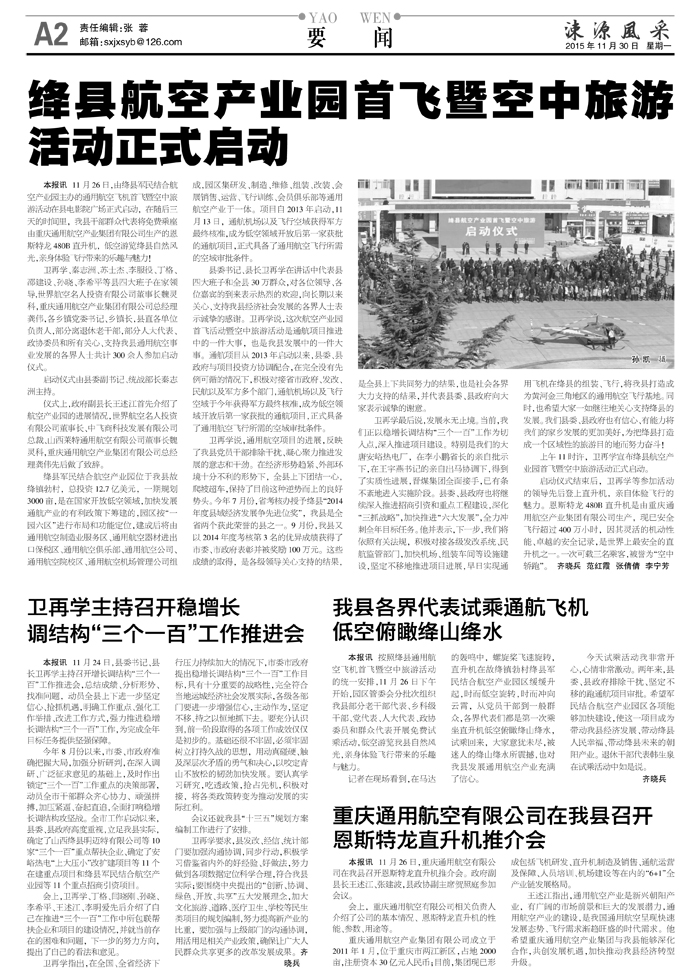 我县各界代表试乘通航飞机低空俯瞰绛山绛水