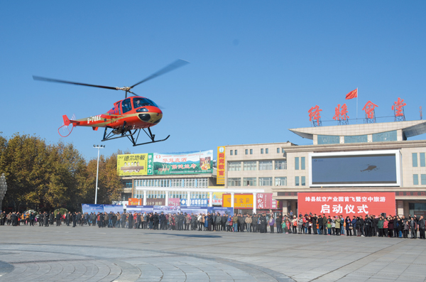 11月26日,由绛县军民结合航空产业园主办的通用航空飞机首飞暨空中旅游活动在县电影院广场正式启动,在随后三天的时间里,我县干部群众代表将免费乘座由重庆通用航空产业集团有限公司生产的恩斯特龙480B直升机,低空游览绛县自然风光,亲身体验飞行带来的乐趣与魅力!