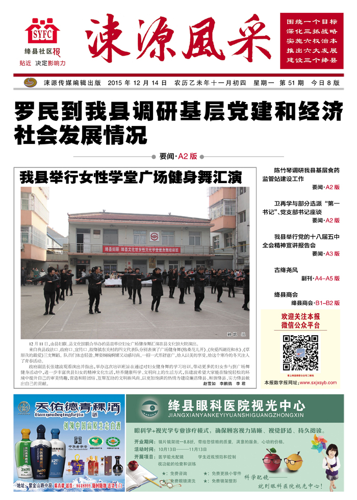 《涑源风采》绛县社区报 贴近,决定影响力 涑源传媒编辑出版 微信:suyuanfengcai 邮箱:sxjxsyb@126.com 电话:6523423