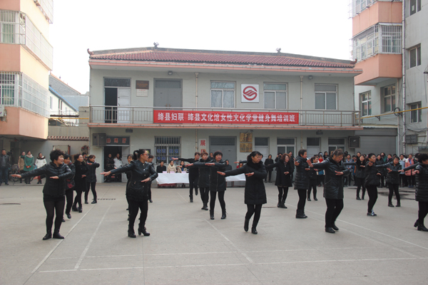 12月11日,由县妇联、县文化馆联合举办的县直单位妇女广场健身舞汇演在县文化馆大院演出。