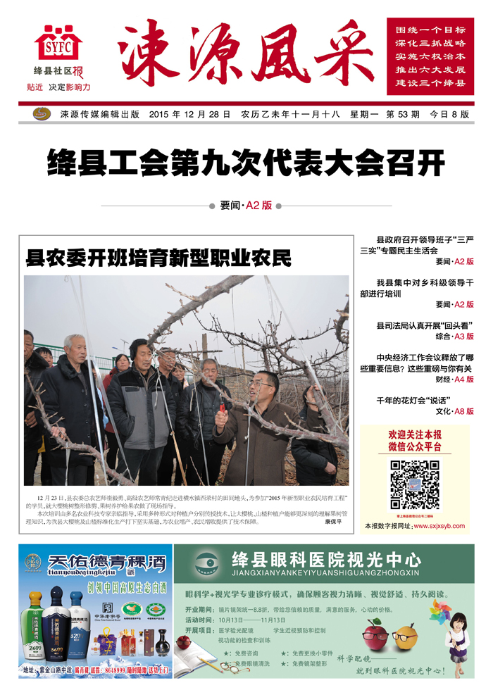 《涑源风采》绛县社区报 贴近,决定影响力 涑源传媒编辑出版 微信:suyuanfengcai 邮箱:sxjxsyb@126.com 电话:6523423