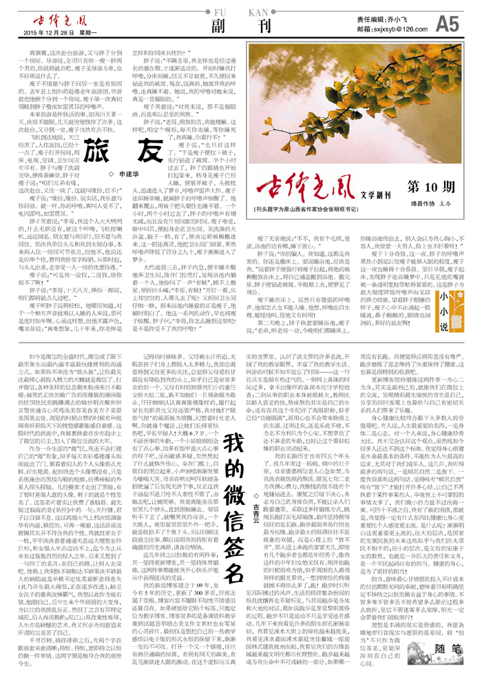 《涑源风采》绛县社区报 贴近,决定影响力 涑源传媒编辑出版 微信:suyuanfengcai 邮箱:sxjxsyb@126.com 电话:6523423