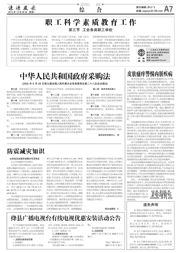 《涑源风采》绛县社区报 贴近,决定影响力 涑源传媒编辑出版 微信:suyuanfengcai 邮箱:sxjxsyb@126.com 电话:6523423