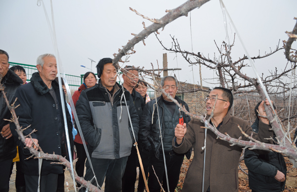12月23日,县农委总农艺师崔毅勇、高级农艺师常青纪走进横水镇西录村的田间地头,为参加"2015年新型职业农民培育工程"的学员,就大樱桃树整形修剪、果树养护给果农做了现场指导。