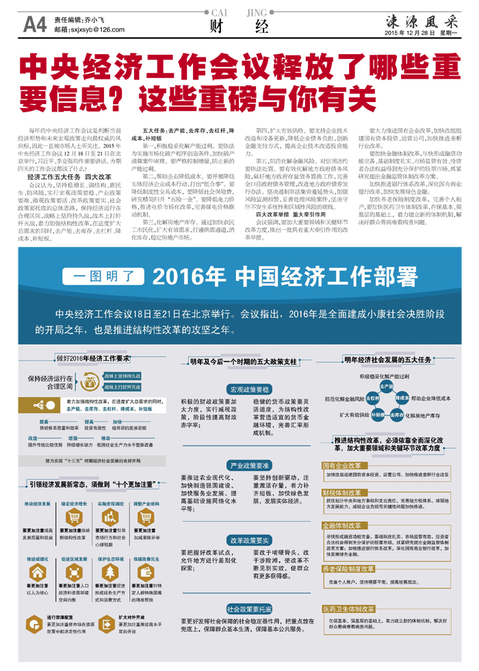 五大任务:去产能、去库存、去杠杆、降成本、补短板