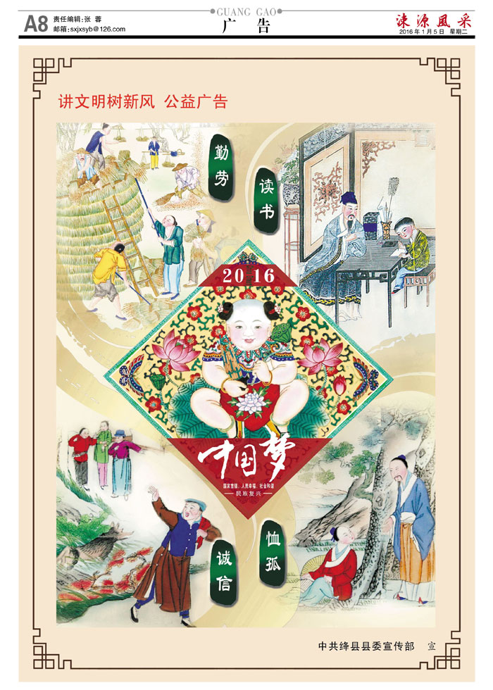 《涑源风采》绛县社区报 贴近,决定影响力 涑源传媒编辑出版 微信:suyuanfengcai 邮箱:sxjxsyb@126.com 电话:6523423