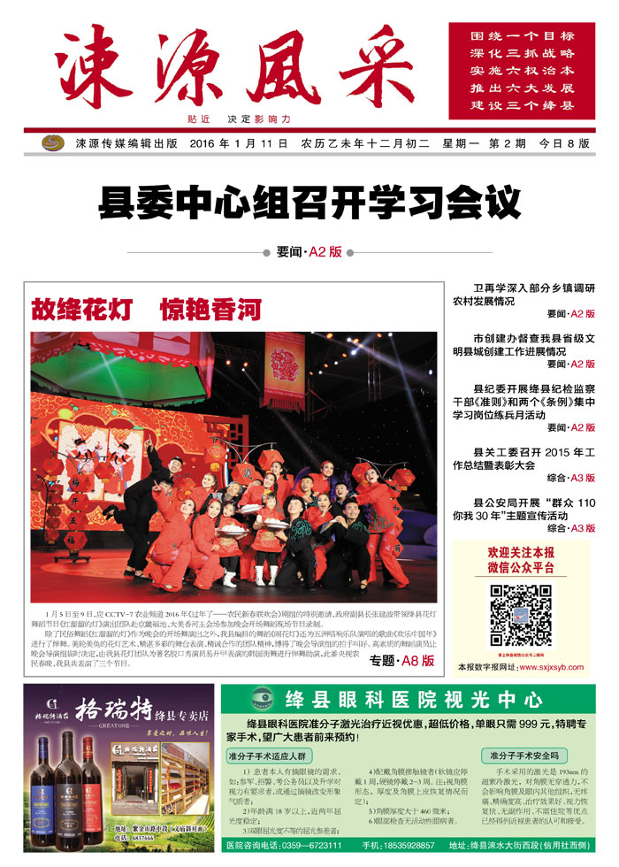 《涑源风采》绛县社区报 贴近,决定影响力 涑源传媒编辑出版 微信:suyuanfengcai 邮箱:sxjxsyb@126.com 电话:6523423