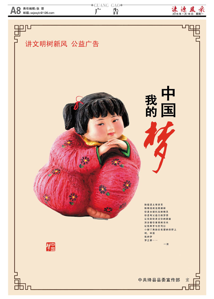 《涑源风采》绛县社区报 贴近,决定影响力 涑源传媒编辑出版 微信:suyuanfengcai 邮箱:sxjxsyb@126.com 电话:6523423
