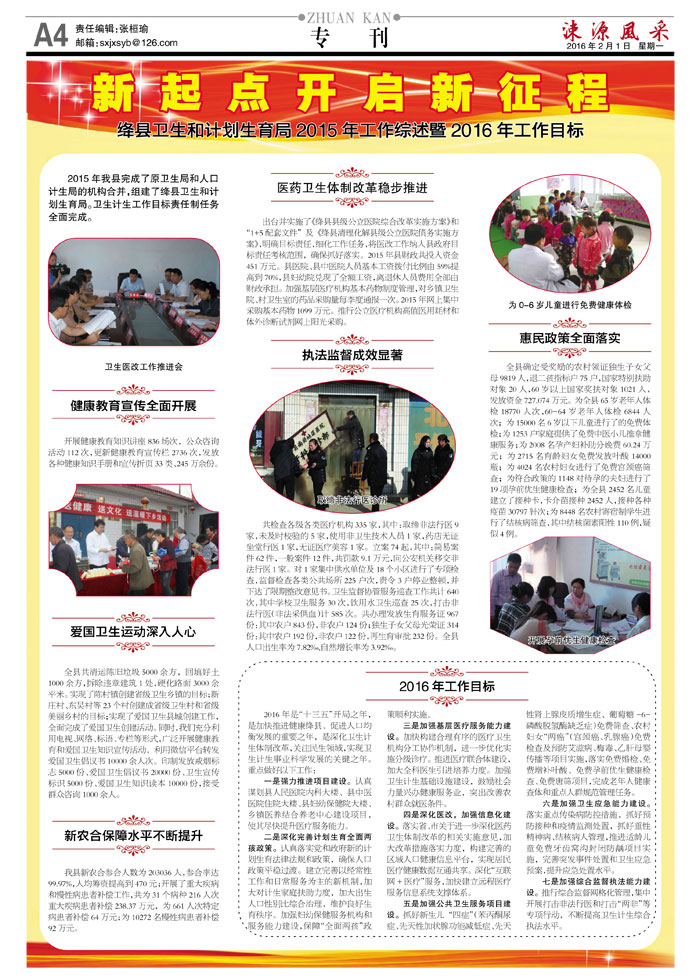 新起点开启新征程 绛县卫生和计划生育局2015年工作综述暨2016年工作目标