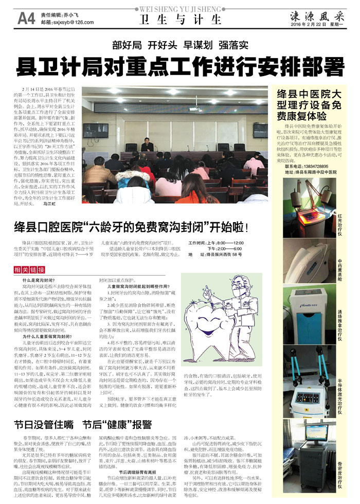 绛县口腔医院"六龄牙的免费窝沟封闭"开始啦!