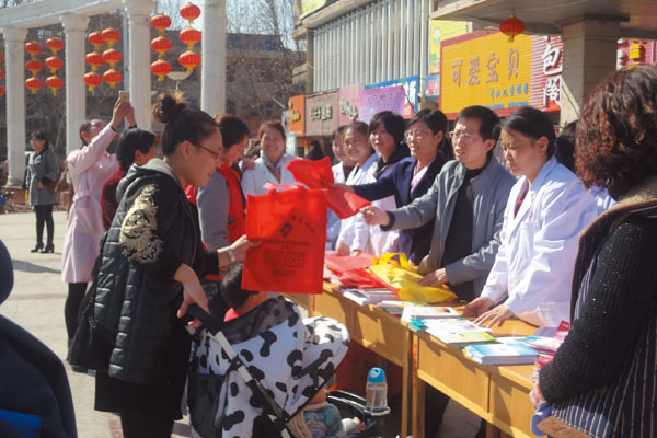 为庆祝“三八”国际妇女劳动节,3月3日,县妇幼保健院在电影院广场举行了“庆三·八 关爱女性 关注健康”为主题的宣传活动。县妇联主席王琳、县卫计局副局长逯矿旗、妇幼股股长郑艳红、县妇幼保健院院长齐医变及妇幼保健院干部职工30余人参加活动。