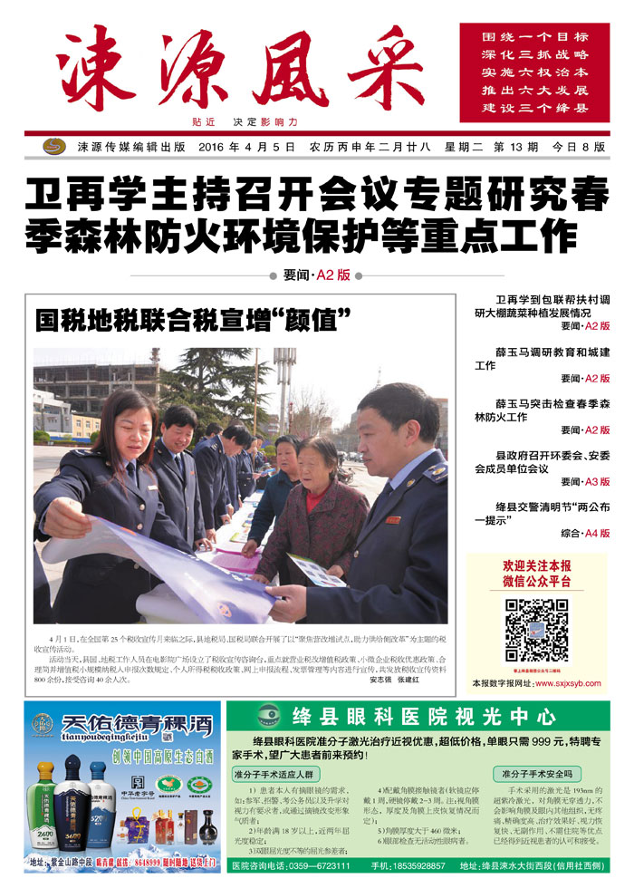 《涑源风采》贴近,决定影响力 涑源传媒编辑出版 微信:suyuanfengcai 邮箱:sxjxsyb@126.com 电话:6523423