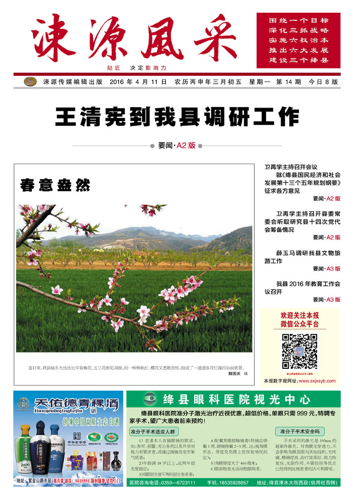 《涑源风采》贴近,决定影响力 涑源传媒编辑出版 微信:suyuanfengcai 邮箱:sxjxsyb@126.com 电话:6523423