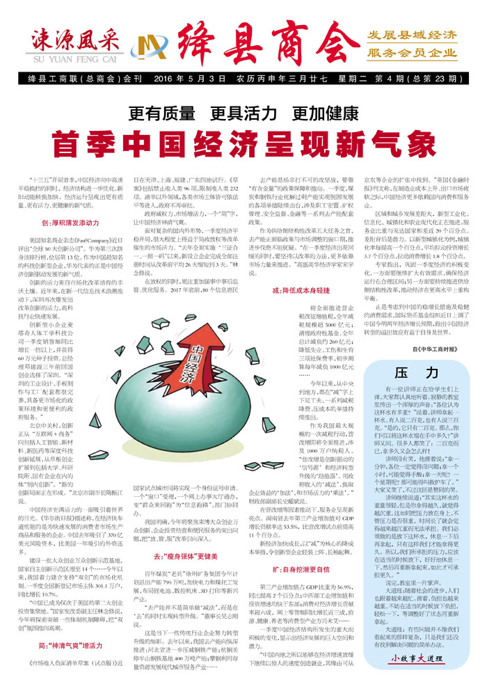 “十三五”开局首季,中国经济向中高速平稳换挡的同时,经济结构进一步优化,新旧动能转换加快,经济运行呈现出更有质量、更有活力、更健康的新气质。