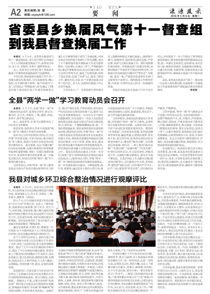 会前,省委县乡换届风气第十一督查组一行还深入我县横水镇,实地察看了乡镇换届工作进展情况和严肃换届纪律宣传教育情况。