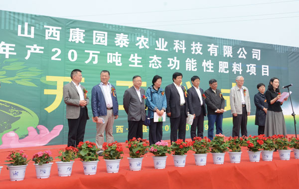 本报讯 院县合作迈大步,科技孵化结硕果。5月9日,中国农业科学院、山西地质调查院联手我县民营企业、投资1.3亿元的精品项目——山西康园泰农业科技有限公司年产20万吨生态功能性肥料项目开工。这一项目的实施,将变我县的资源优势为经济优势,增加农民收入,促进经济社会发展,推动全县生态文明建设,成为全市稳增长调结构“三个一百”的一大亮点。