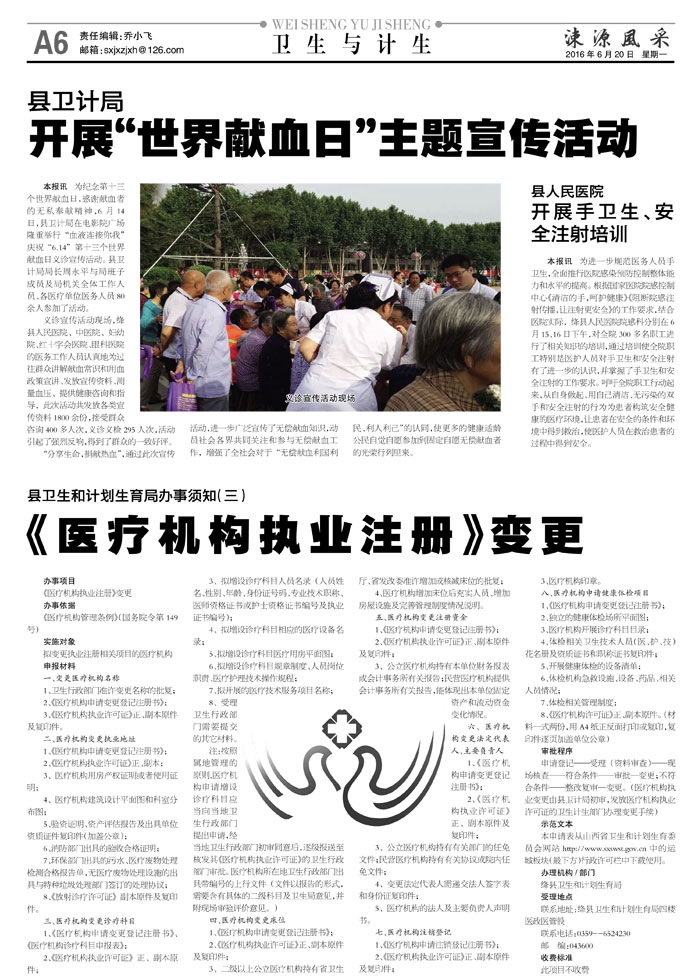 县卫计局:开展“世界献血日”主题宣传活动