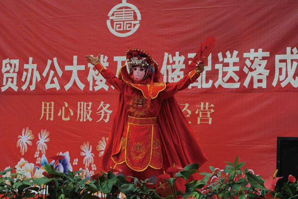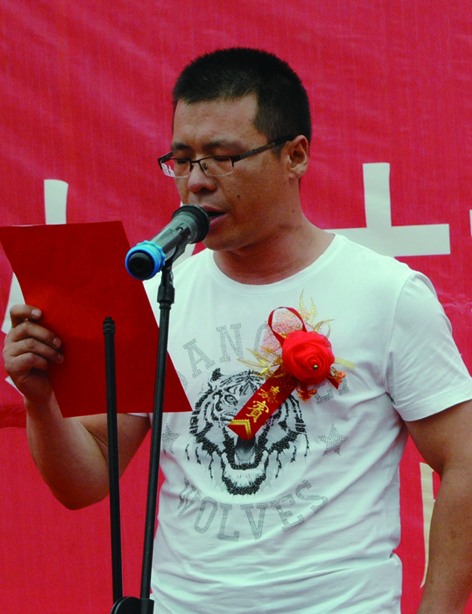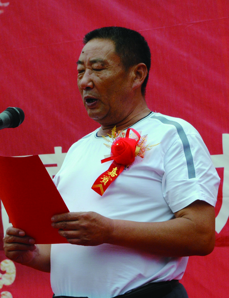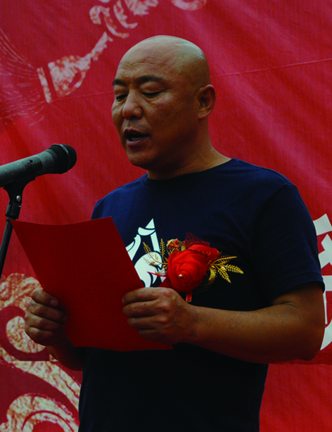 县工商联副主席张青想、城内村村委主任乔忠民、百惠工会主席朱红志为宇震仓储配送站竣工揭牌
