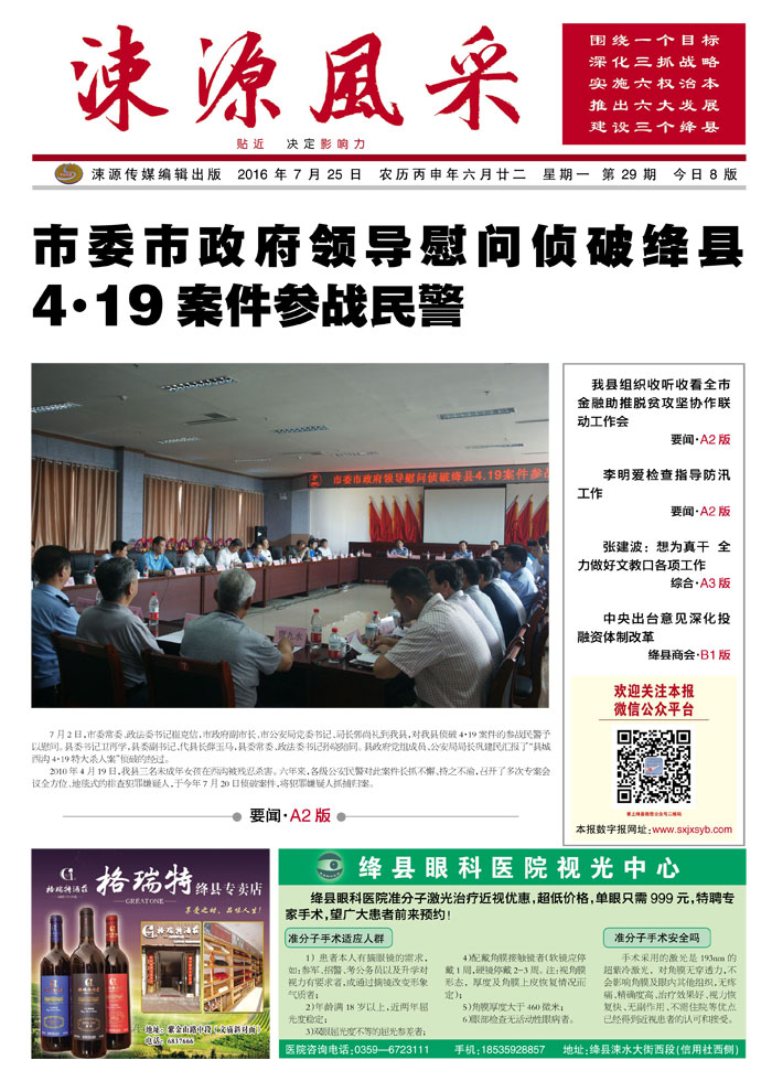 《涑源风采》贴近,决定影响力 涑源传媒编辑出版 微信:suyuanfengcai 邮箱:sxjxsyb@126.com 电话:6523423