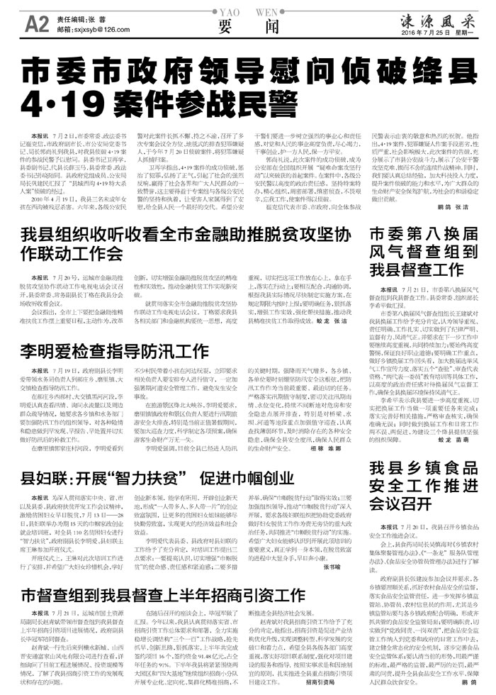 市委市政府领导慰问侦破绛县4·19案件参战民警