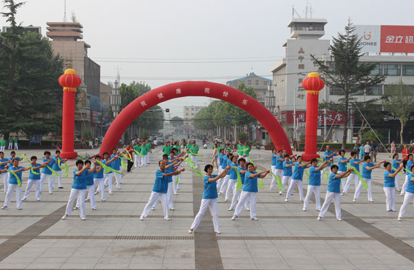 此次活动由县柔力球协会、县健身气功协会、杨氏太极拳培训中心、城内村紫阳小区舞蹈队联合举办。