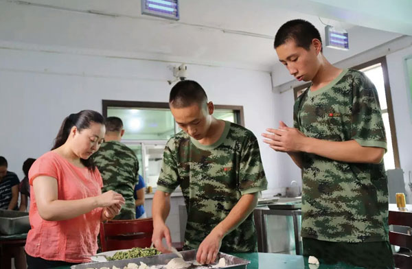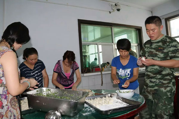 活动中,大家一起动手,有说有笑,有的和面、有的擀皮、有的和馅、有的包饺子,大家还给战士们传授一些包饺子的小技巧,如何包馅儿,如何下锅,说说笑笑,犹如暖意融融的大家庭。