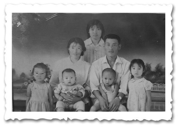 李艳秋(右一)小时候的全家福,父亲和妹妹(左一)、大弟(右二)都因亨廷顿舞蹈症先后去世了