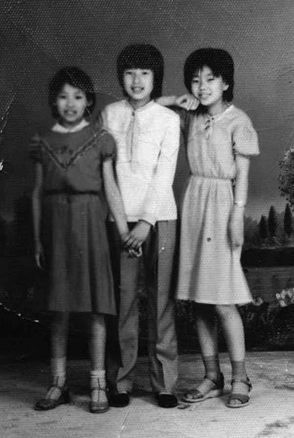 少女时的李艳秋(中)与妹妹、小伙伴合影