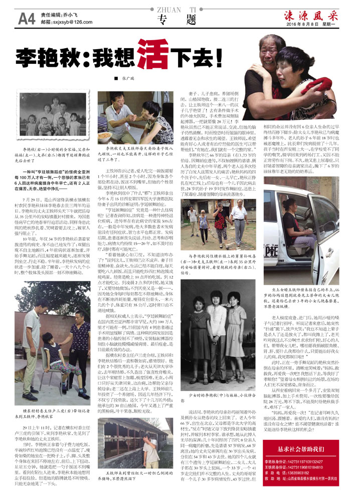 7月29日,是山西省绛县横水镇横东村农民李艳秋妹妹李艳春去世三周年的忌日。李艳秋的丈夫王铁师头天下午就把岳母从35公里外的安峪镇董封村接来,为因患怪病早亡的艳春举行追思活动。同样身患此病的艳秋挣扎着、哭喊着要去坟上,被家人强行阻止了。