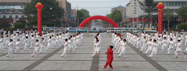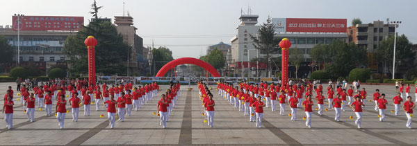 为了提高我县男性公民健身的积极性,今年4月26日,全县2016年乡镇太极拳培训启动仪式在县电影院广场举行,拉开了在全县普及太极拳的序幕。各乡镇成立了太极拳辅导站,采取集中培训和分散辅导相结合,除本县太极拳协会指导员下乡培训外,还邀请外地太极拳专家和高级指导员不定期进行实地培训,全县各乡镇1000余人参加了培训,掀起了全县强健体魄、阳光生活的全民健身热潮。