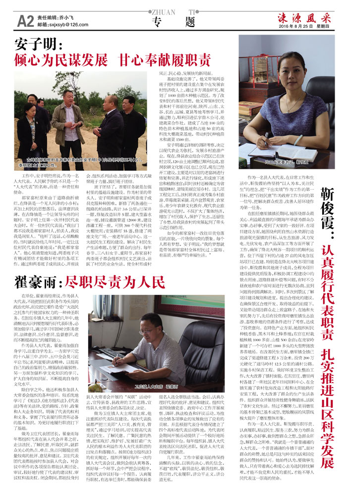 靳俊霞:认真履行代表职责 扎实推进山区科学发展