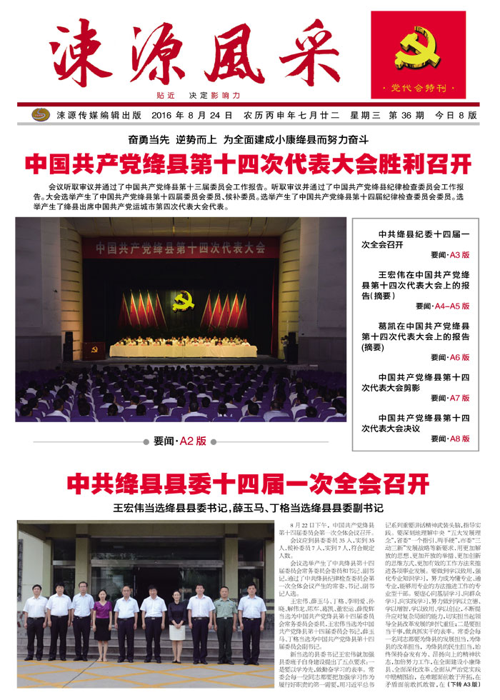 2016年8月24日 第36期(党代会特刊) 今日8版