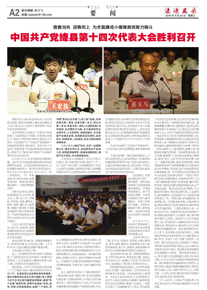 奋勇当先 逆势而上 为全面建成小康绛县而努力奋斗 中国共产党绛县第十四次代表大会胜利召开